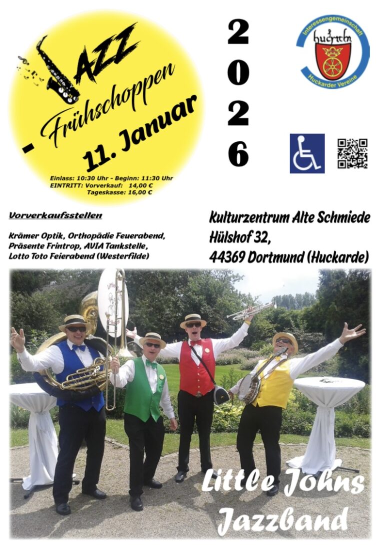 Datum | Musikrichtung | Band | Uhrzeit | 11.01.2026 | Jazz | Little Johns Jazzband | 11:30-14:30 |